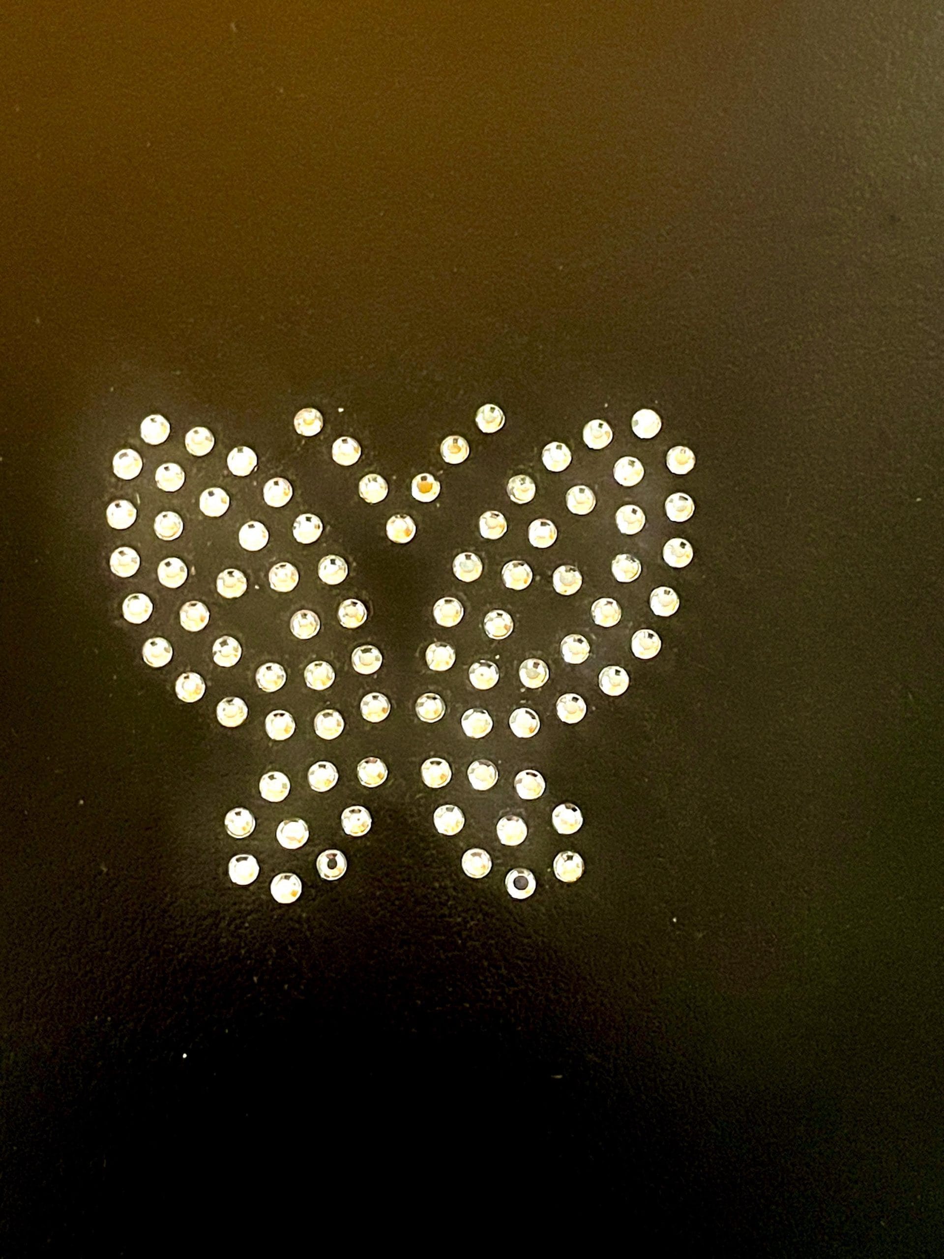 Elevate your garments with this stunning clear rhinestone iron-on butterfly transfer! Perfect for personalizing T-shirts, bags, or other heat-resistant fabrics, this design combines elegance and versatility for all your DIY projects.
