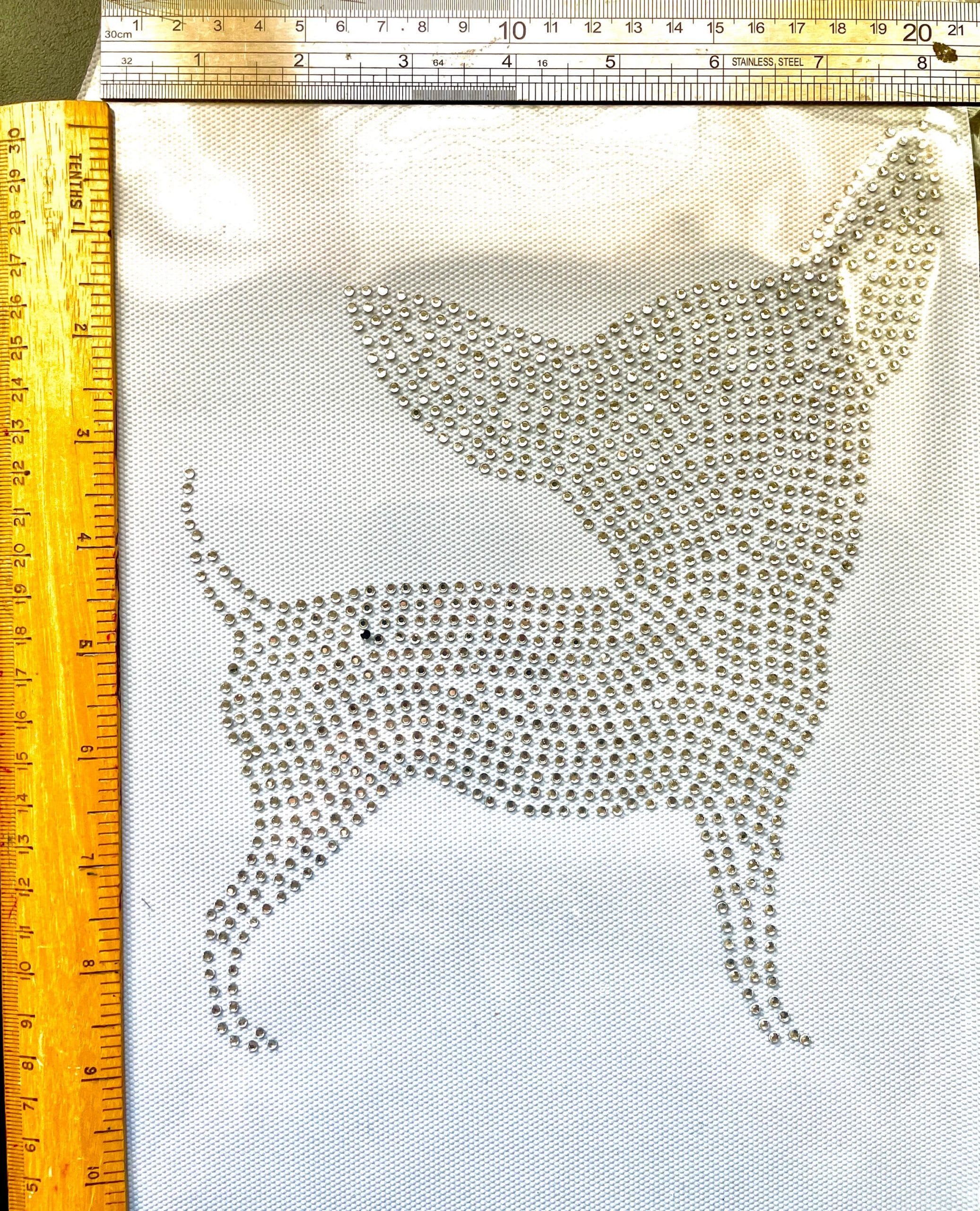 Elevate your garments with this stunning clear rhinestone iron-on chihuahua transfer! Perfect for personalizing T-shirts, bags, or other heat-resistant fabrics, this design combines elegance and versatility for all your DIY projects.