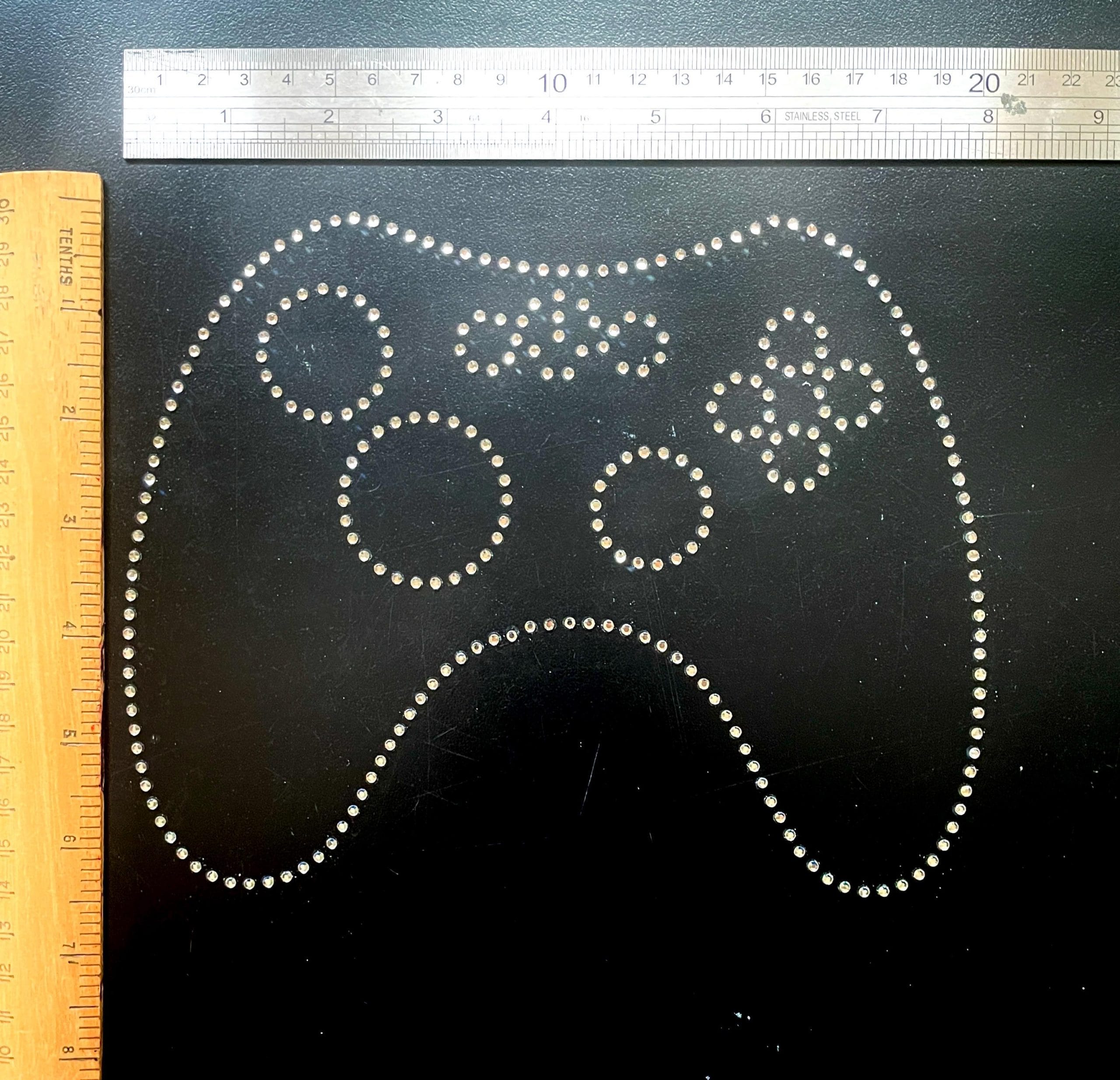 Elevate your garments with this stunning clear rhinestone iron-on gamers Xbox controller outline print transfer! Perfect for personalizing T-shirts, bags, or other heat-resistant fabrics, this design combines elegance and versatility for all your DIY projects.