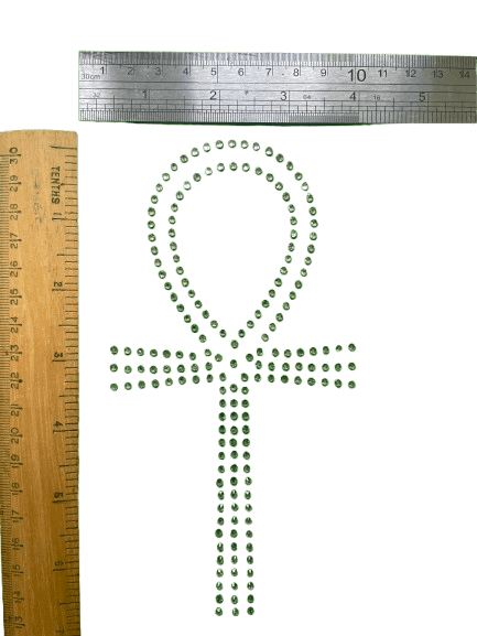 Elevate your garments with this stunning clear rhinestone iron-on ankh transfer! Perfect for personalizing T-shirts, bags, or other heat-resistant fabrics, this design combines elegance and versatility for all your DIY projects.
